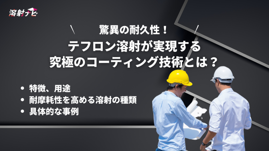 このページでは、下記のような方に向けて、テフロンコーティングの特徴や用途、また耐摩耗性を高めるための溶射技術、具体的な事例などを詳しく解説していきます。